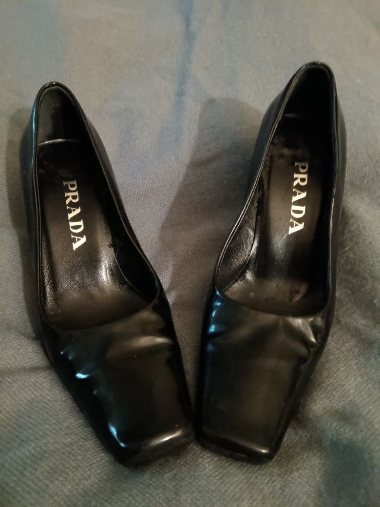 Black heeled Prada shoe size 35 I believe translates to size 5 us women's.