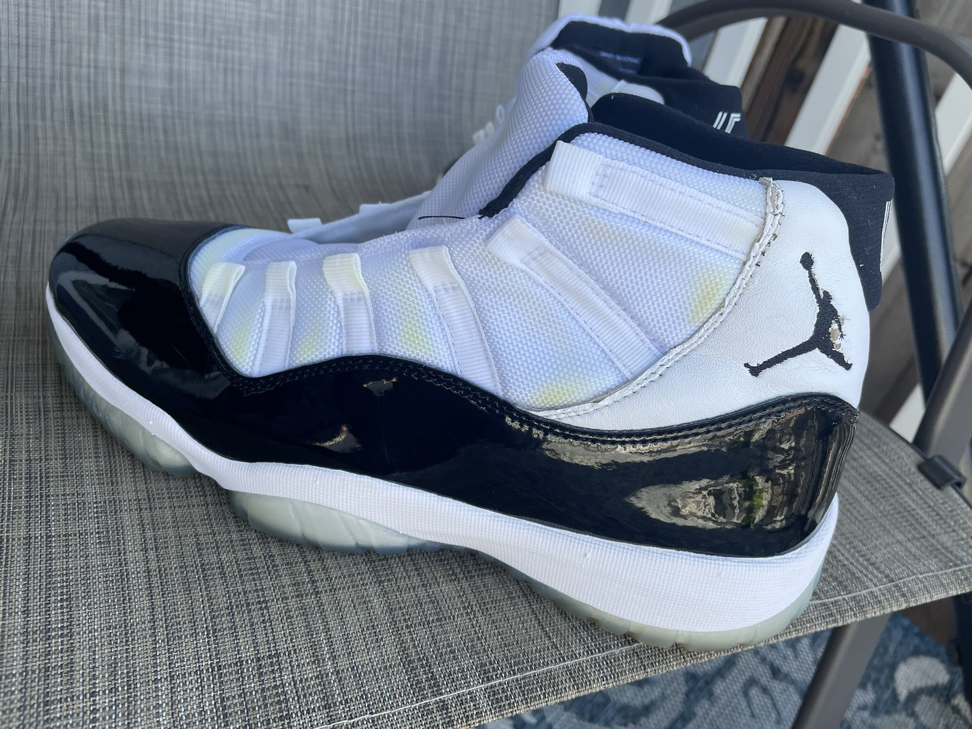 Size 10.5 comes with box. Don’t know where the stains came from after washing.