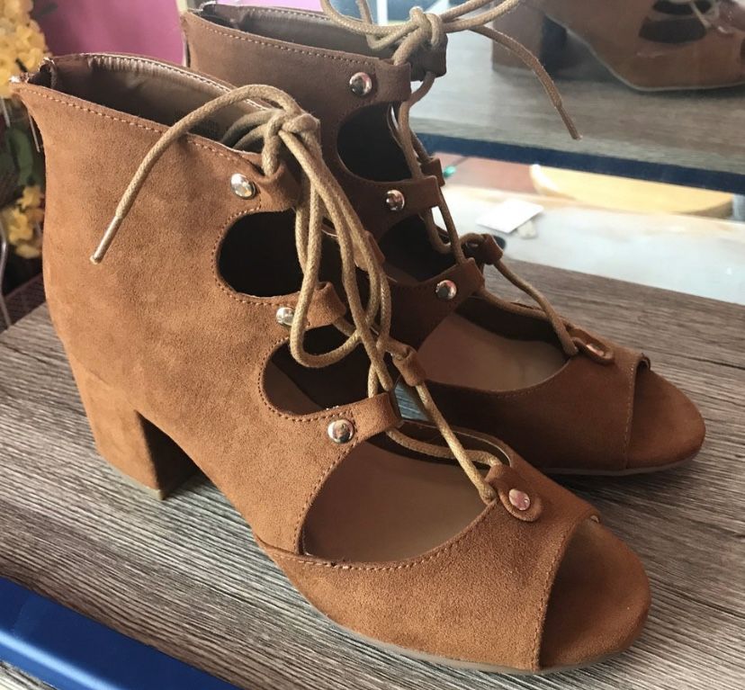 Super cute cognac Bamboo lace up sandals with a chunky heel. I've never worn these.