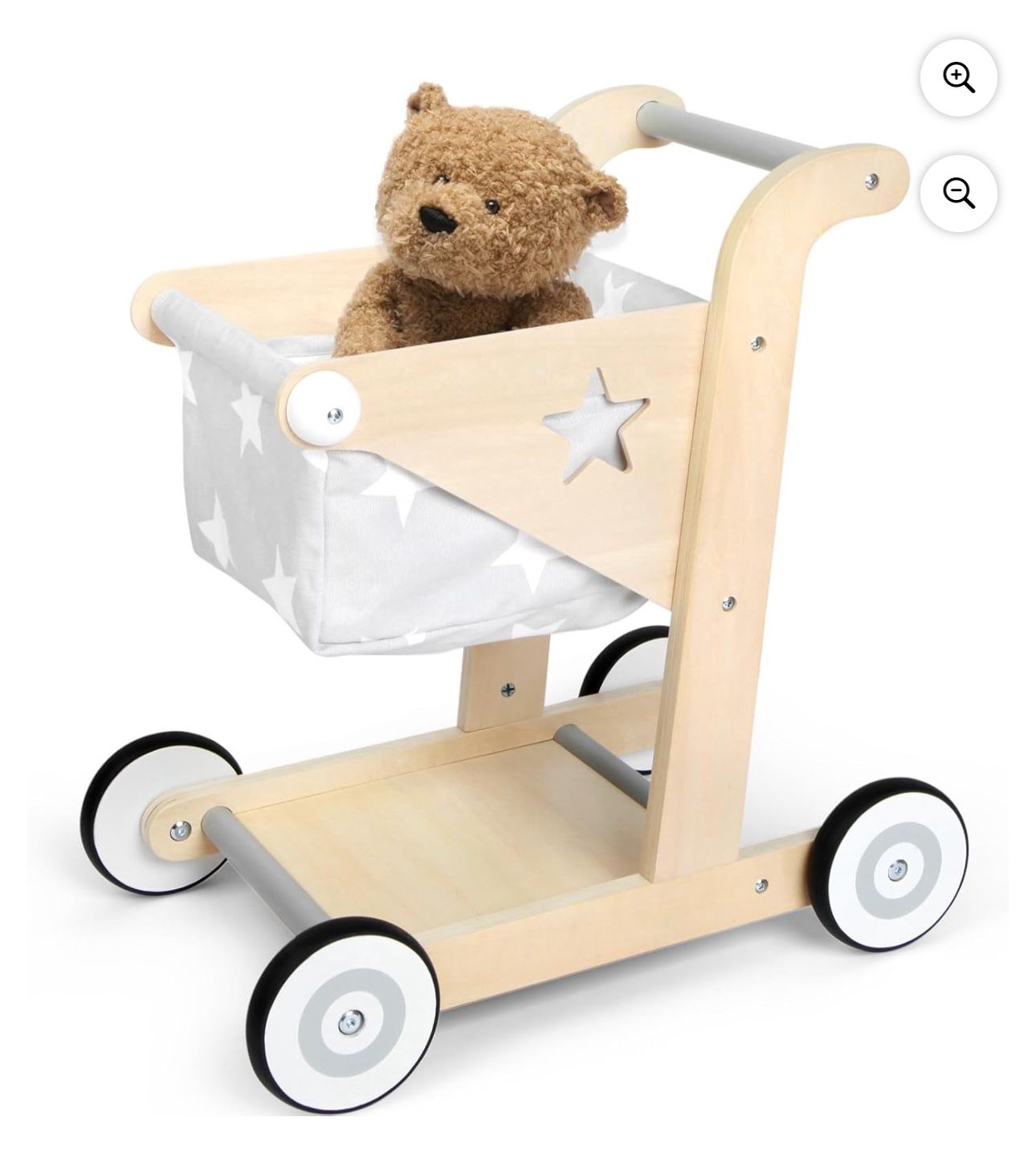 Opened box for pictures, new never used, 2 available, Little Hollow Company 2 in 1 Baby Push Walker and Wooden Doll Stroller - Wood Shopping Cart for Toddlers Learning to Walk - Walker Toy for Girls and Boys 1 Year Old