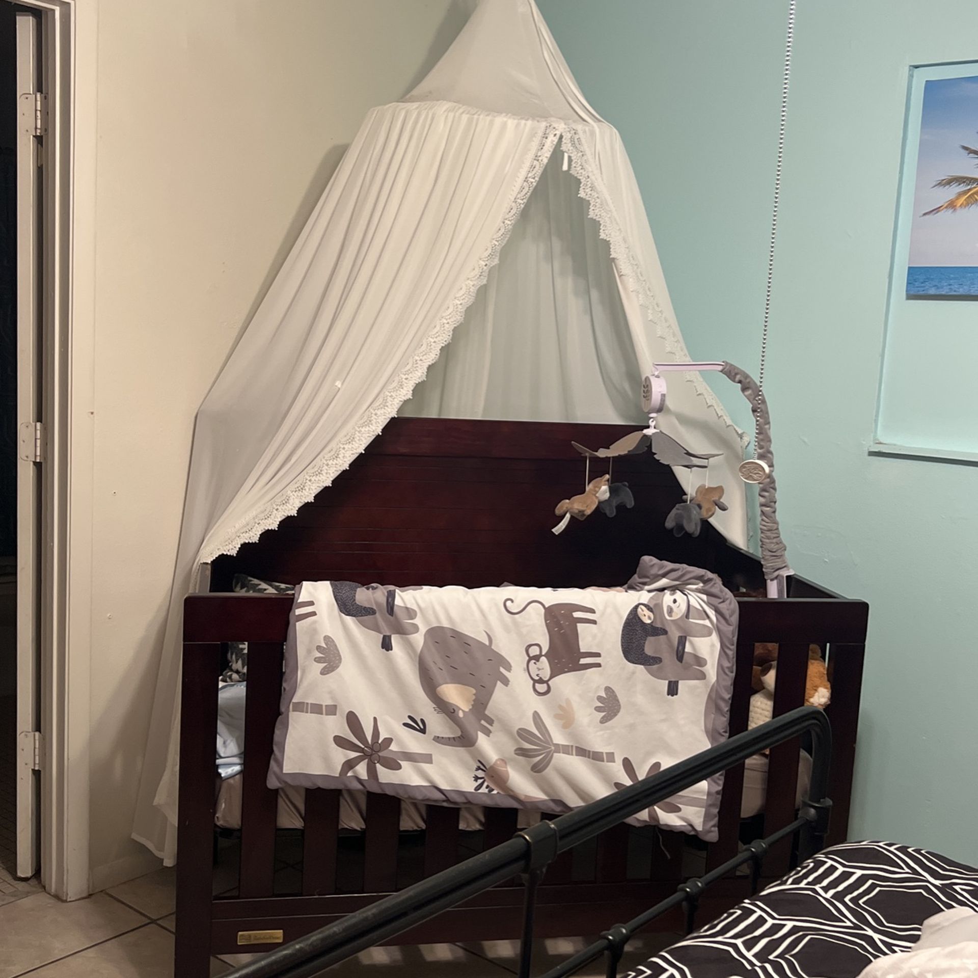 Crib set for sale Includes changing table, canopy, mobile and blankets. 200 obo