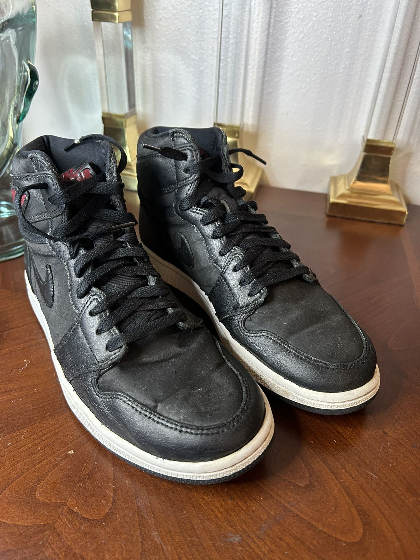 Nike Air Jordan 1 Retro High 555088-060 Black Satin Gym Red Shoes Men's Size 8.5