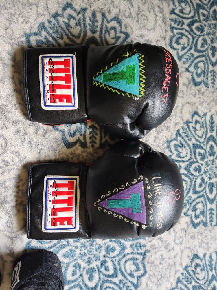 Used but in good condition, youth size title boxing gloves, has been personalized so selling this one cheaper.