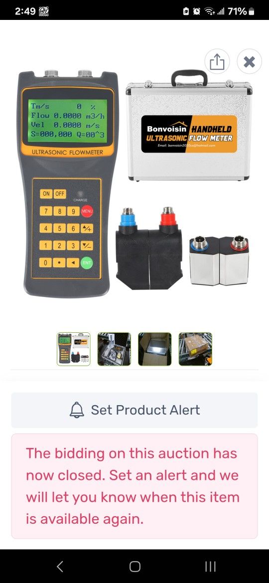 Bonvoisin Handheld Ultrasonic Flow Meter Portable Clamp on Flowmeter with Data Output S1+M2 Sensors for Seawater Alcohol Industrial Sewage DN15-700mm (1/2-28") $549.00 retail