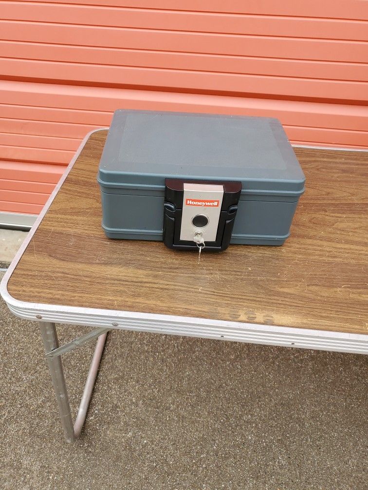 Honeywell Safe .14 inches long 10 inches wide storage is 11 inches wide 3 inches deep has a spot in corner thar needs cleaned