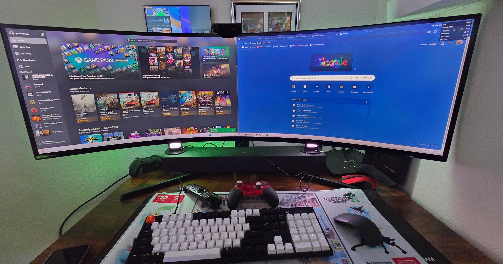 49 inch curved Samsung gaming display. Looking to upgrade which is why I’m selling it. Works perfectly. Had a minor scuff on the bottom and dent on the top (refer to pictures)