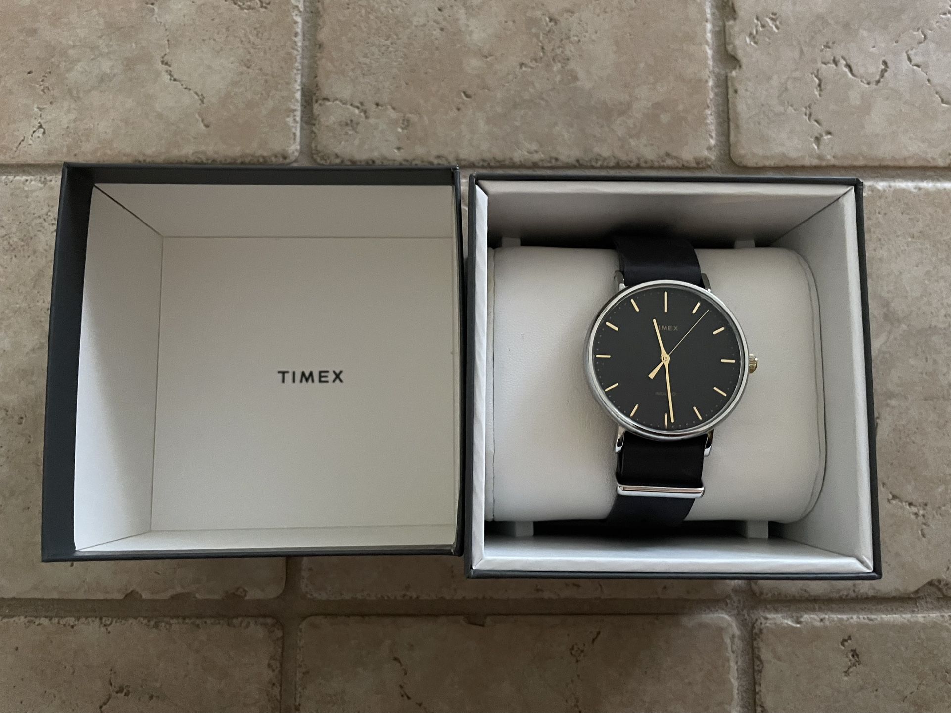 $25 obo Timex watch with Indiglo Indiglo shows as matte green color (see pic) Includes: Watch, box, owner manual 2 leather bands that came with the watch; measures about 10in length 3 nylon watch bands; measures about 9.5in length. ***There are some watch face scratches that I tried to show in the photo, but couldn’t quite capture. I think putting a tempered glass protector on the watch would help lessen the visibility of them. *** Watch works, but will need a new battery.