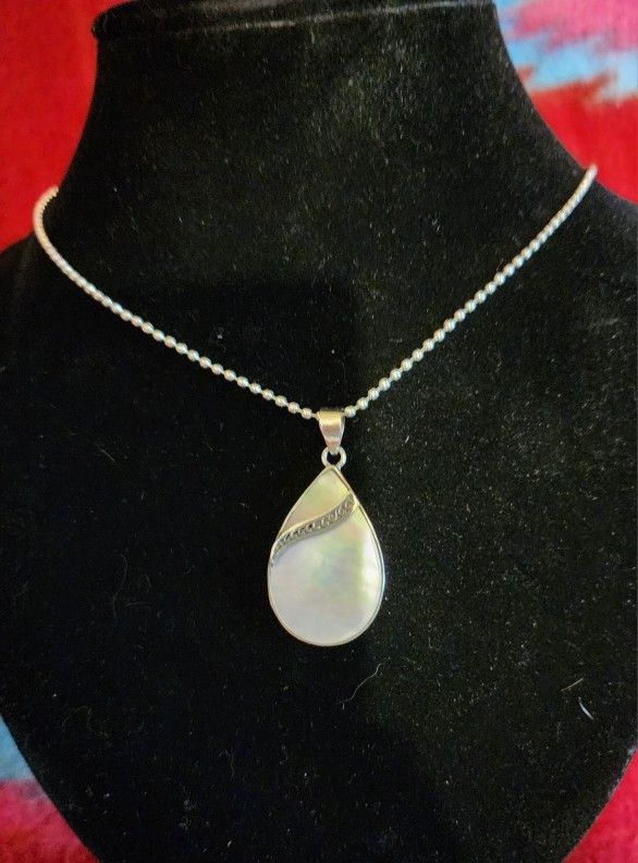 This a new, never worn , package only opened twice. Once when I received it and now for pictures. The stone is mother of pearl. The metal is .925 sterling silver it retails for 80.00. Necklace does not come with but I am including it anyways. What's a pendant without a necklace to wear it on...lol The Necklace is .925 sterling silver and it is 18 inches in length. Animal friendly household and non-smoking home. All sales are final. I do not refund if you broke it. I list everything if something is wrong. As is. *Willing to meet oak ridge hwy in karns at the Dollar Tree in knoxville tennessee*Please becareful when opening I use staples to close/seal for added security of item in shipping* I know but I had someone blame me for them not looking. Have a wonderful day.