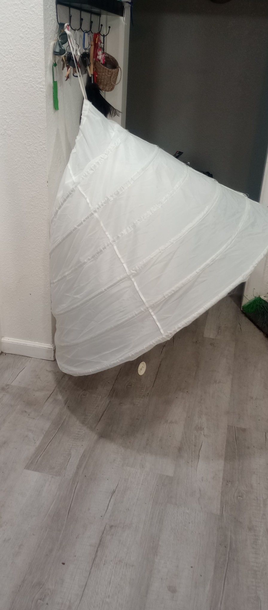 Hoop skirt. Creates a buffer between the dress and the body, keeping the wearer cool and comfortable. Used for quinceanera dress or wedding.