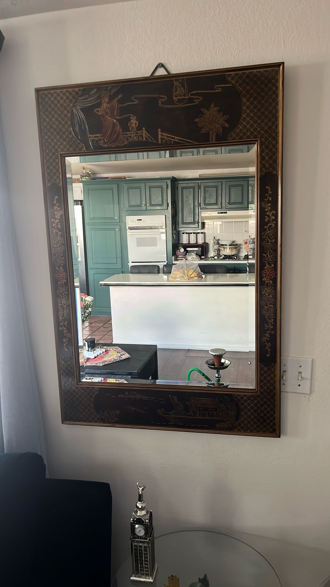 A large, tall mirror made of pure pine paper with a Japanese engraving. Made in Japan.