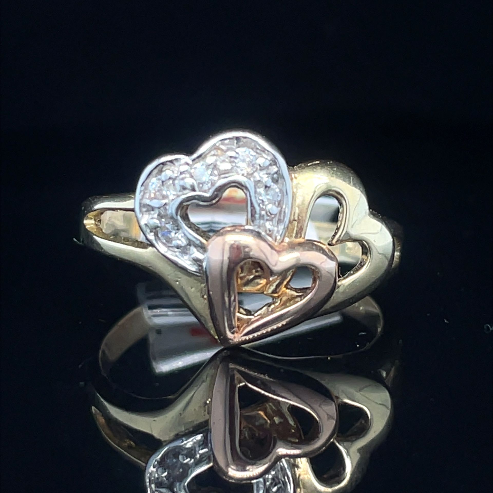 14KT Two Tone CZ 3 Hearts Ring 3.60g Size 7-1/4 159955/4