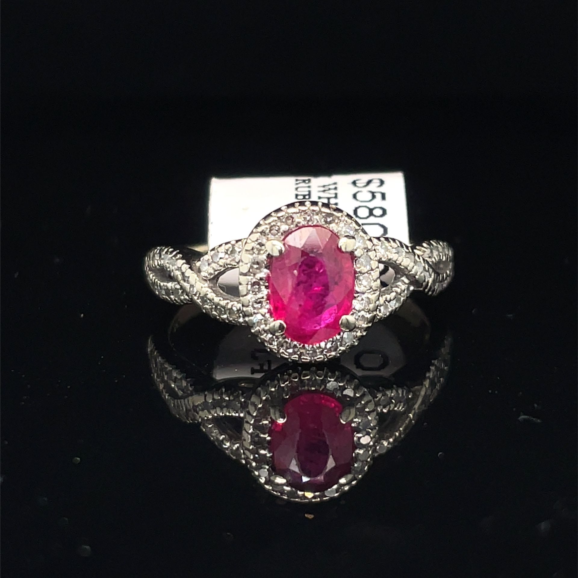 10KT White Gold Ruby Diamond Ring 3.00g Size 7 158262