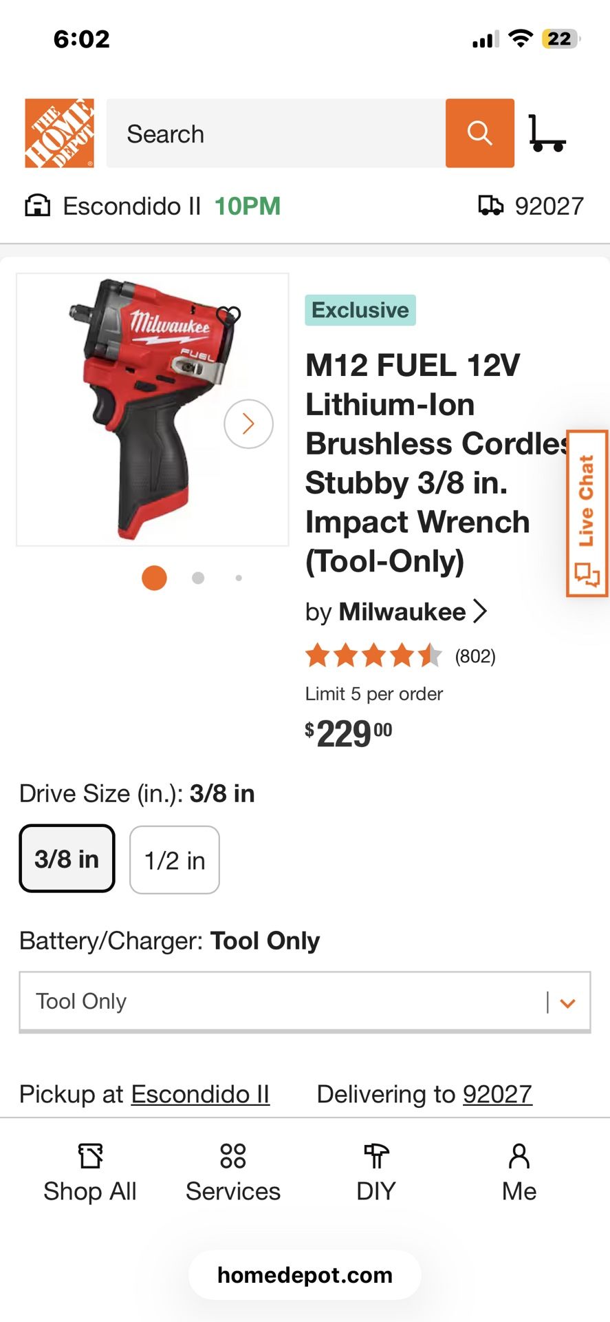 New version used twice with protective boot cover , never dropped , selling cuz I need a 1/2 inch one