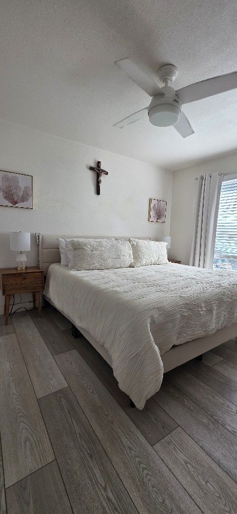 Selling 2 year old king size serta 14 in matress in good shape and bed frame. Frame comes with controller to lift head and or feet just looks weird with no weight on. Bed matress has small rip in back from bed Frame metal took care of that shouldn't be an issue anymore. Matress cover has 2 small iron burns but once bedding covers installed not an issue but if cover can also be purchased.