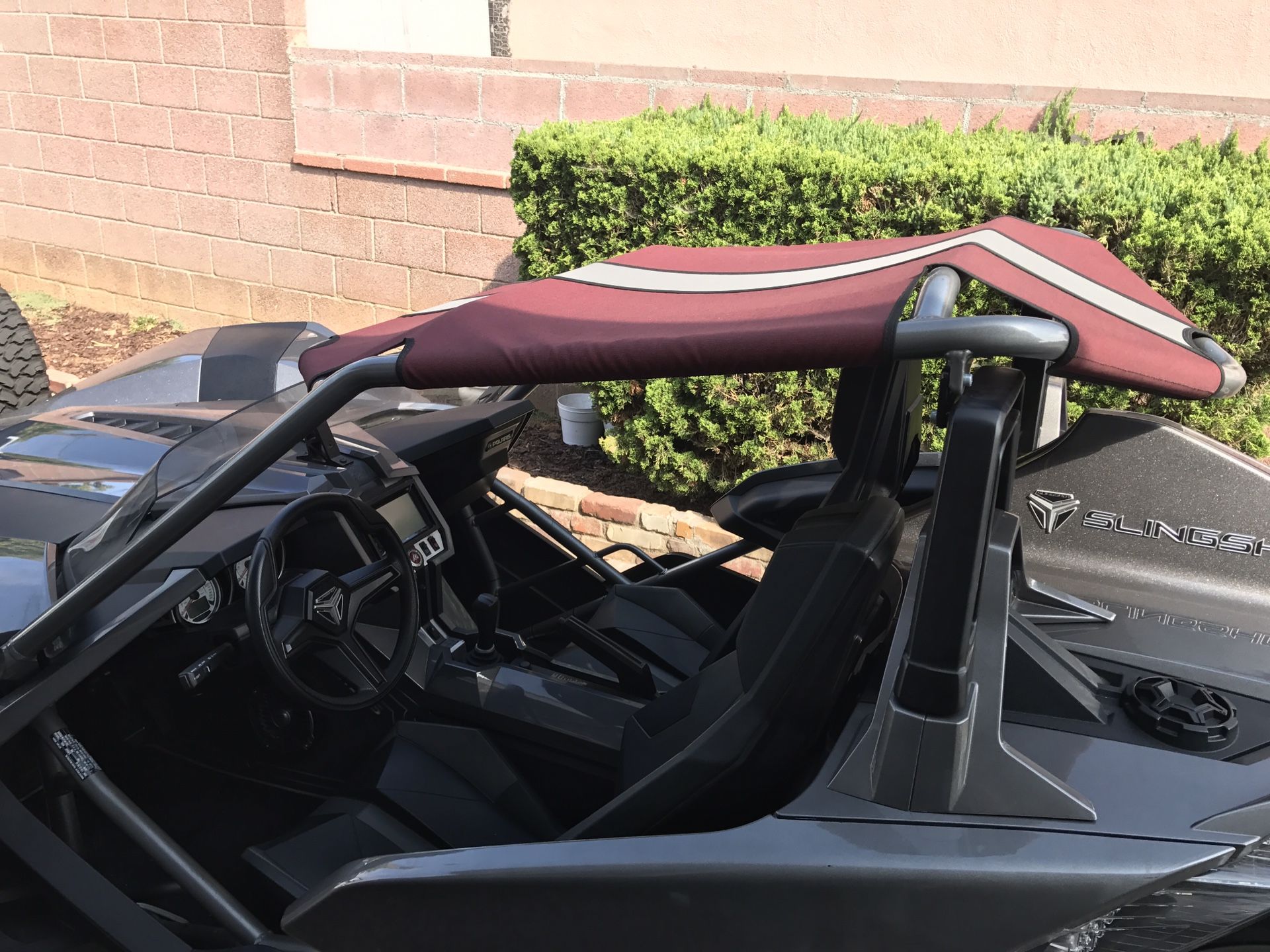 This listing is for the Polaris slingshot roll cage and sun shade only. It is currently installed on a 2015 but may fit other models. Includes all mounting brackets. Asking $925