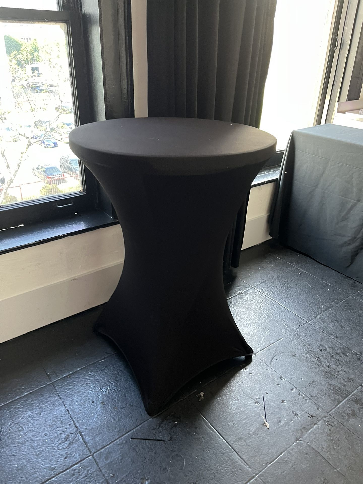 I have two cocktail height, folding tables and 6 foot folding table available. Covers included 70