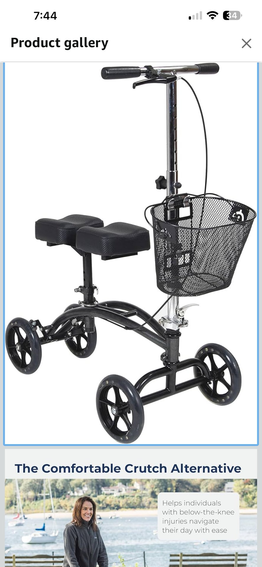 Drive Medical 796 Adjustable Height Steerable Knee Walker Knee Scooter Leg Walker Crutch Alternative, Dual Pad with Basket and Hand Brake 350 Pound We