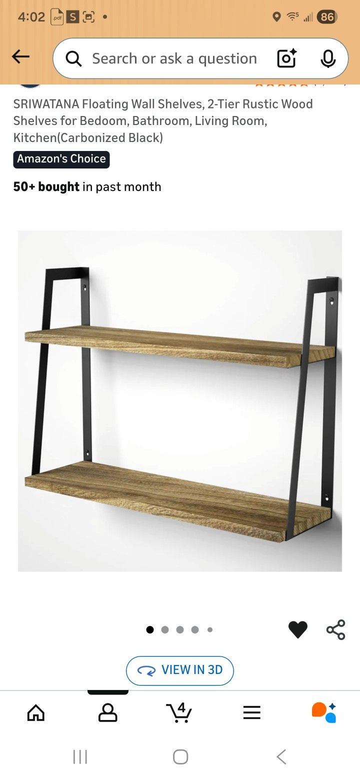 Floating Wall Shelves, 2-Tier Rustic Wood Shelves for Bedoom, Bathroom, Living Room, Kitchen(Carbonized Black)