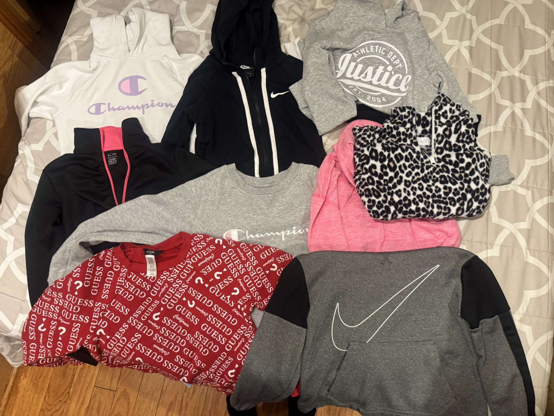 8 clothing almost new name brands Nike Guess and More. All 8 great deal like new. Smoke free pet free house