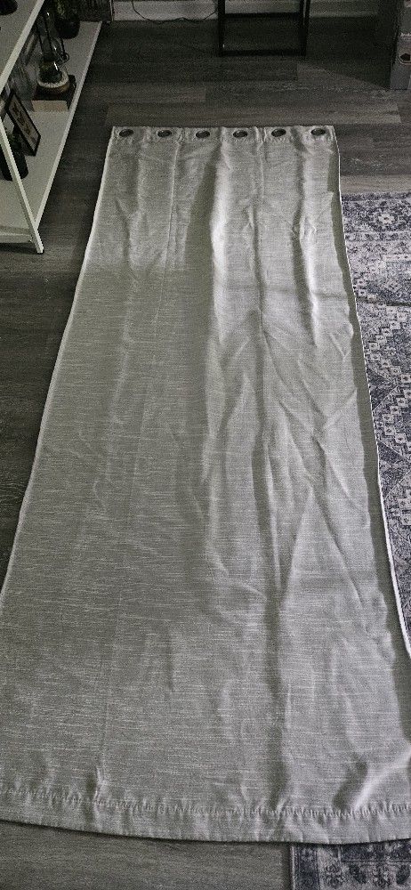 Gray grommet curtain panels. Each panel measures 36x93 in. Partial darkening material. Have 10 panels in total