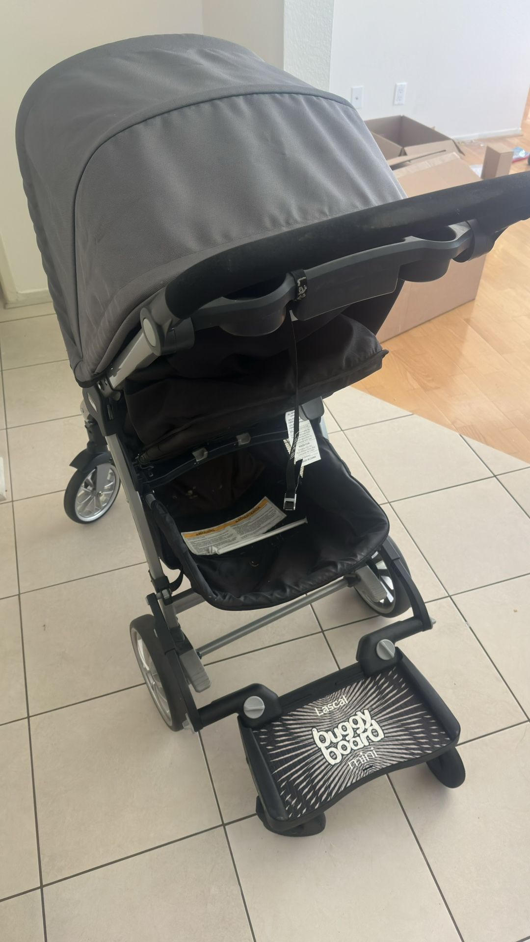 Includes used chico bravo stroller- good condition retails $289 Lascal buggy board addition normal retail at $99 Fan stroller charged by USBC cable retails at $15 Our kids outgrew