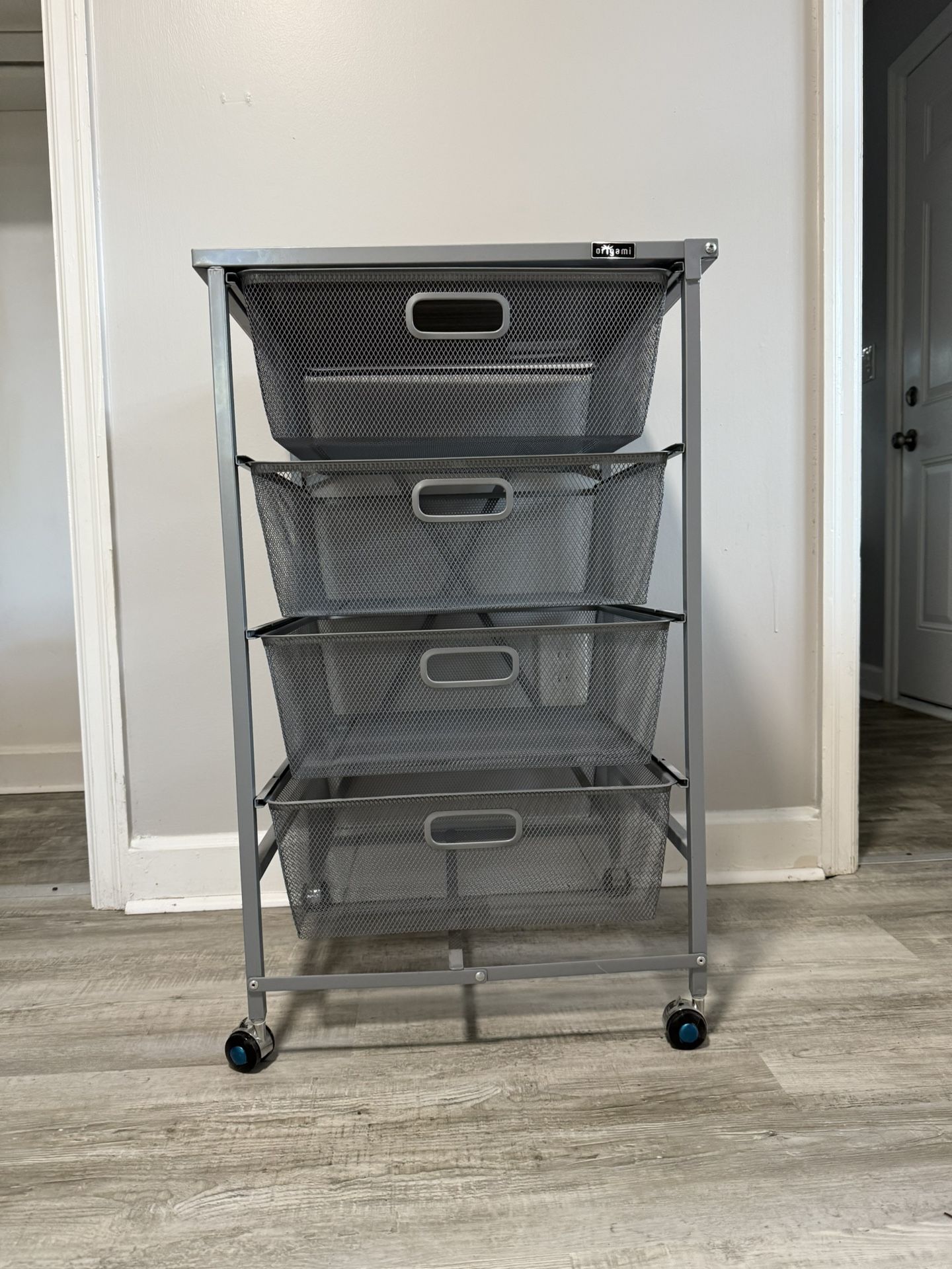 Origami 5 Drawer cart on wheels! Bins are spacious, slide in and out nicely, wheels work great. There is some staining on one of the drawers. (Shown in pic). Perfect for offices or kitchens! $50 (usually go for $120) Pick up in Garners Ferry area Delivery for a fee