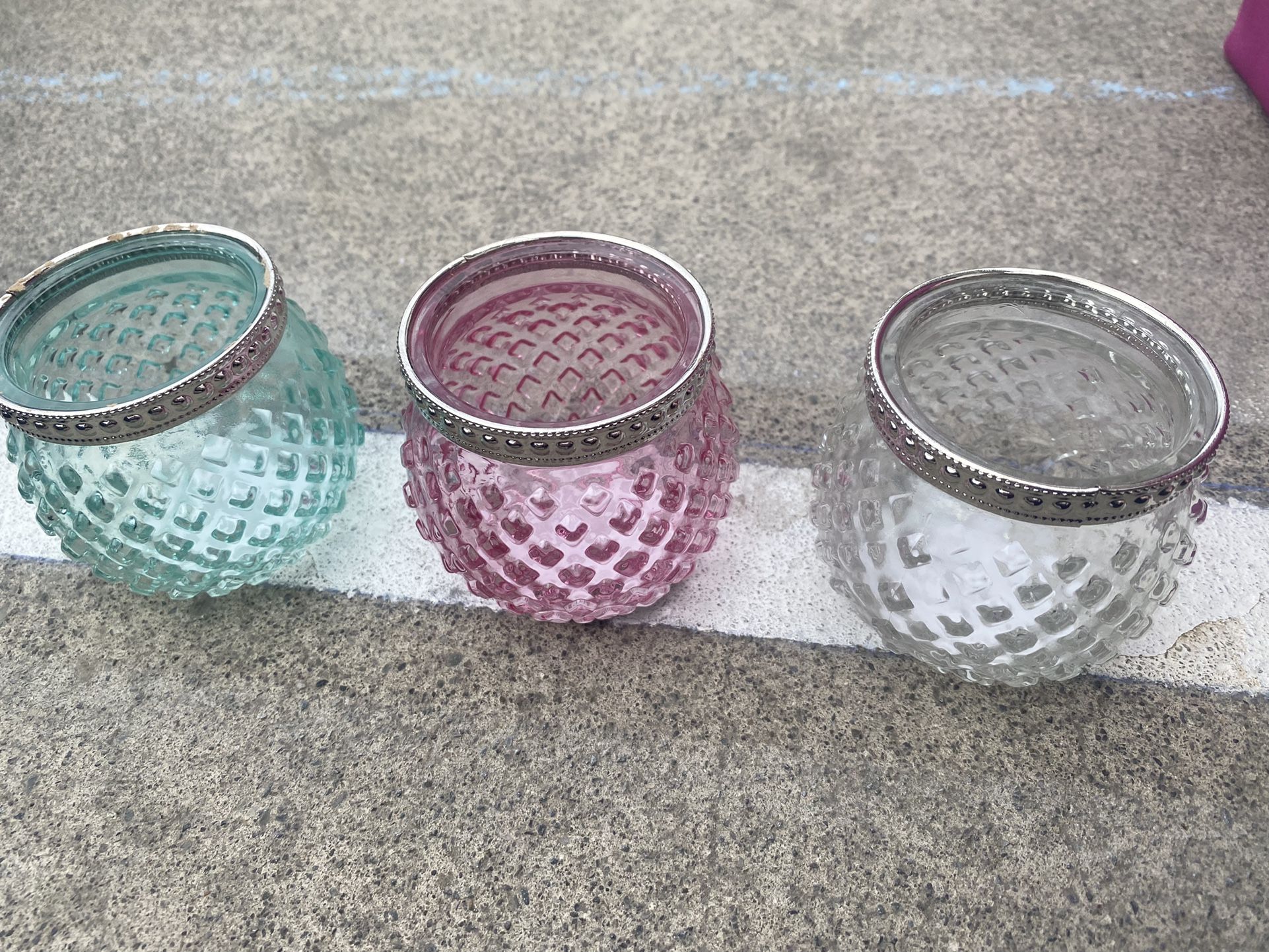 Blue, Pink, and White Glassware/Candle Holders