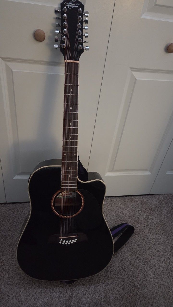 Oscar Schmidt by Washburn 12-string acoustic-electric guitar Brand new in pristine condition Comes with a soft case to make travel easy