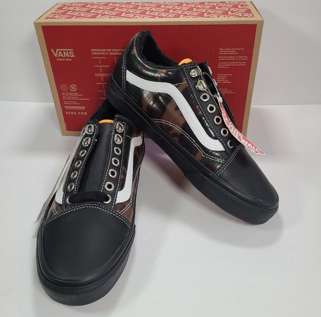 Brand: Vans Style: Old Skool MTE Sneakers Color: (Mte) Black/Camo Condition: New, shoe box is missing lid. See all photos for details. Size: Women's 8.5 / Men's 7 -All weather MTE -Weather resistant exteriors -Heat retention layer between outsole and sockliner -Rubber outsole $90