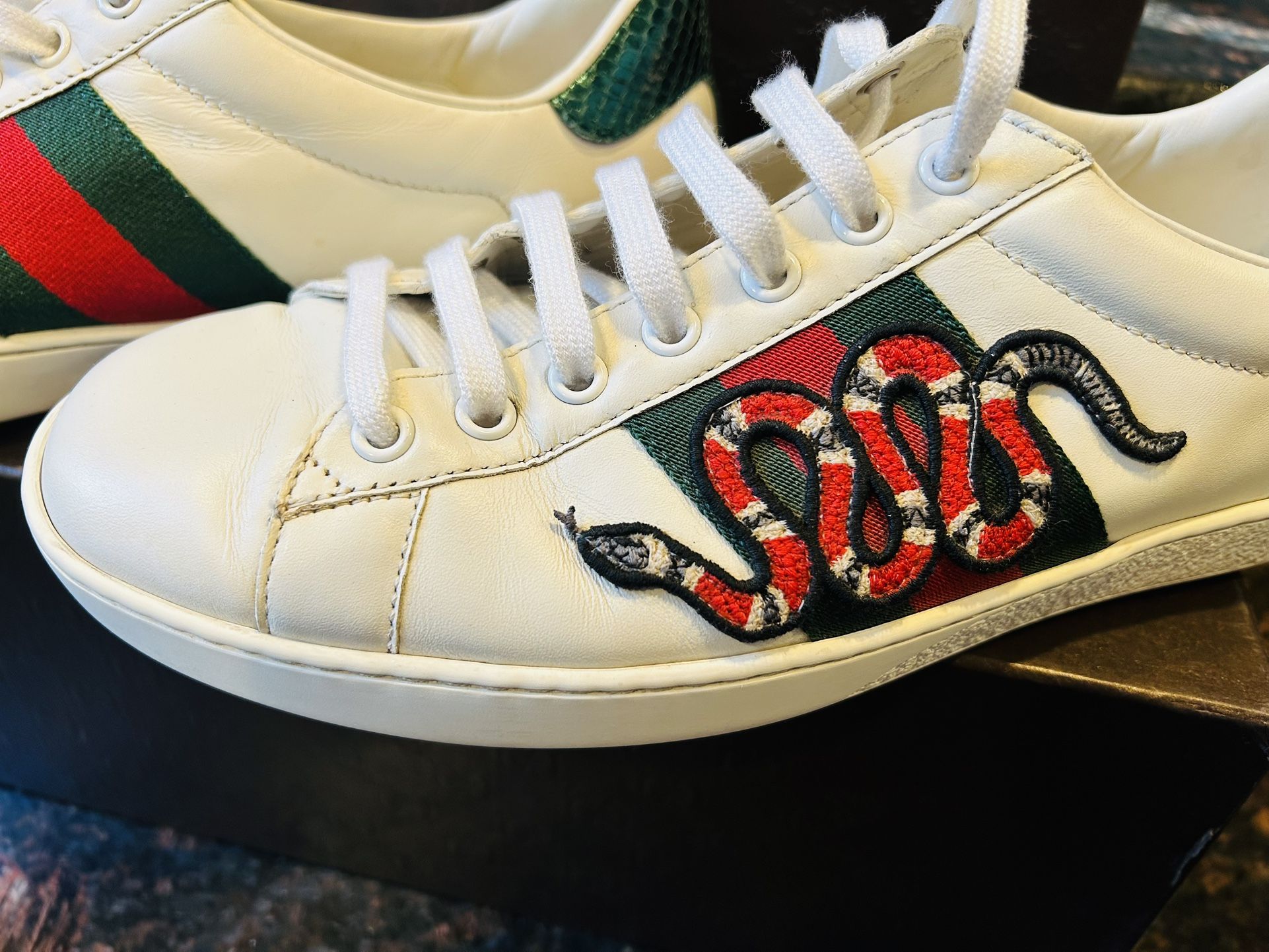 GUCCI “ Ace “ Embroidered Snake, GENUINE ARTICLE, Size 8 Men’s