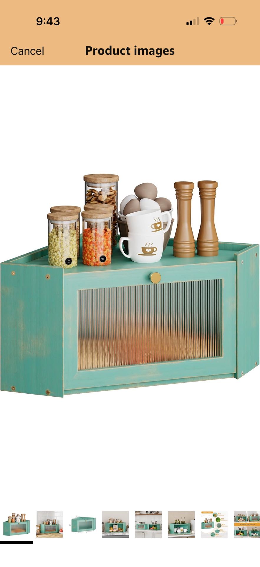 Trironsun Corner Bamboo Bread Box for Kitchen Counter Large Capacity Rustic Bread Storage Container with Wavy Arcylic Transparent Door Vintage Storage for Homemade Bread (Antique Blue)