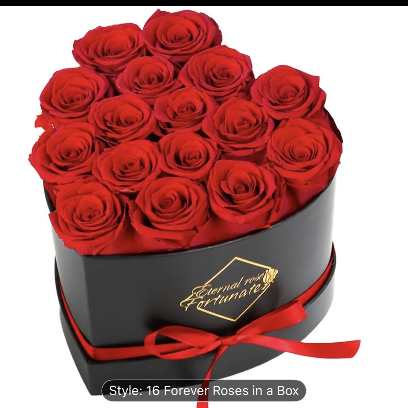 Forever roses Valentine’s Day gift 16 preserved Roses, perfect for valentines gift, birthday present, or cheering up. These roses will last months to years with zero maintenance. Don’t get those roses that die get the roses that last forever. The roses are brand new sealed in the box.