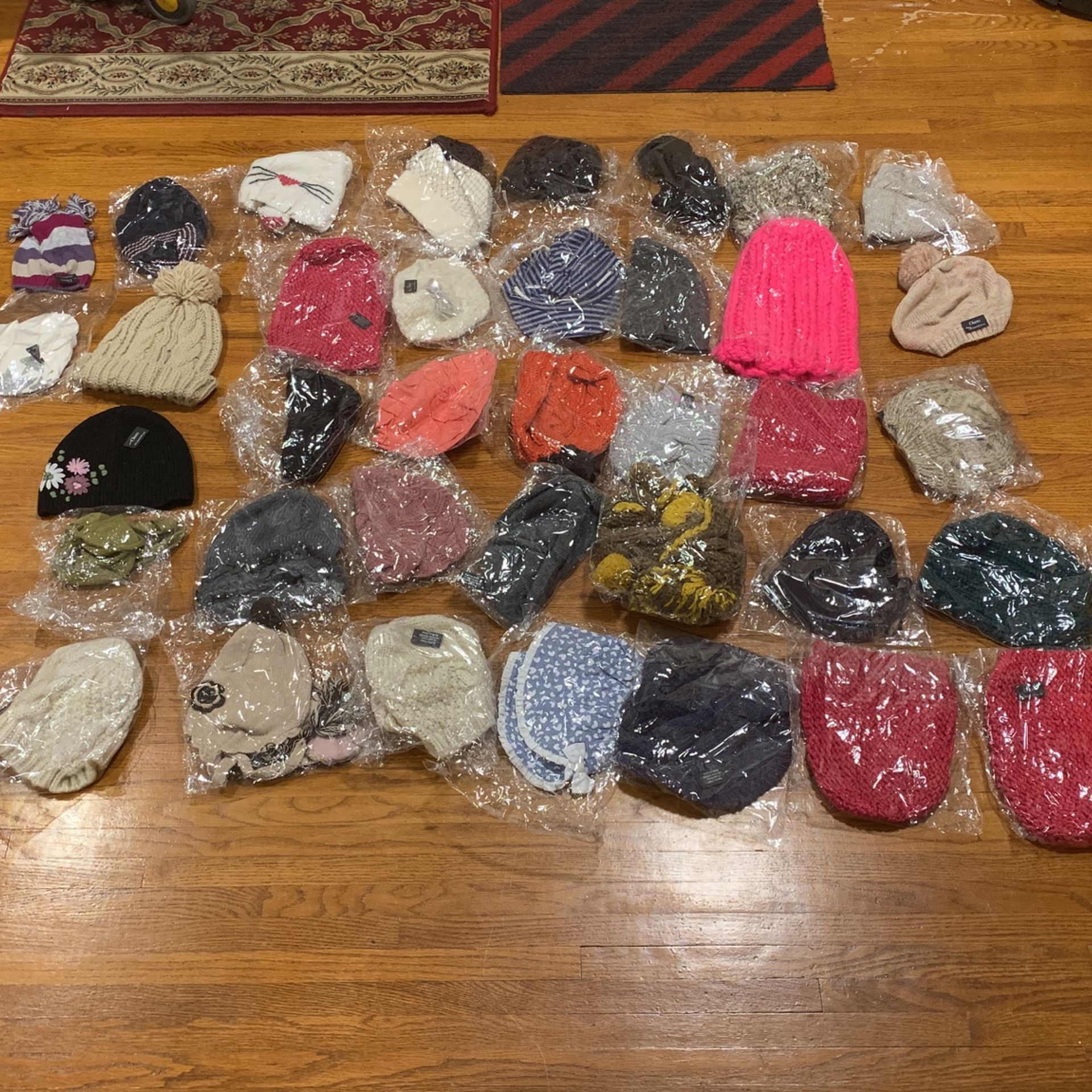 37 different colored beanies and hats bulk sale great for reselling great gifts must get rid of soon must buy all willing to negotiate