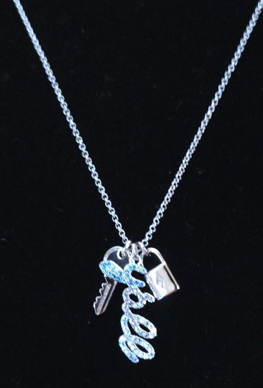 3 charms: Lock & Key & Y'all blue CZ charm 18" chain with additional 2.5" extender Lobster clasp Rhodium plating Smoke/pet free home Can mail S&H $6.50 Smoke/pet free home Take a look at more of my sale items, thx