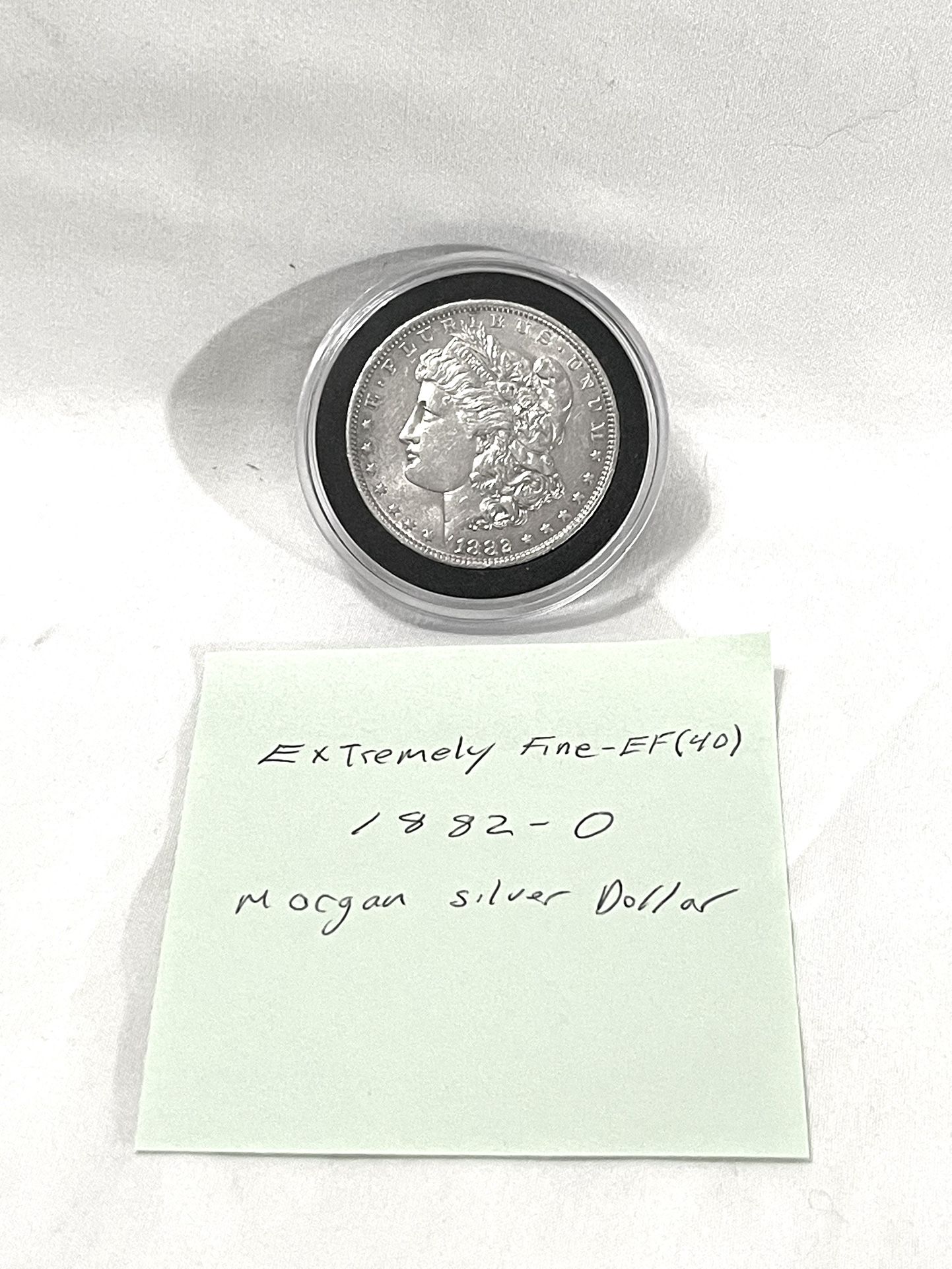 About Uncirculated-AU(50) 1882-O Morgan Silver Dollar. Valued At $86 On Us Coin Book.