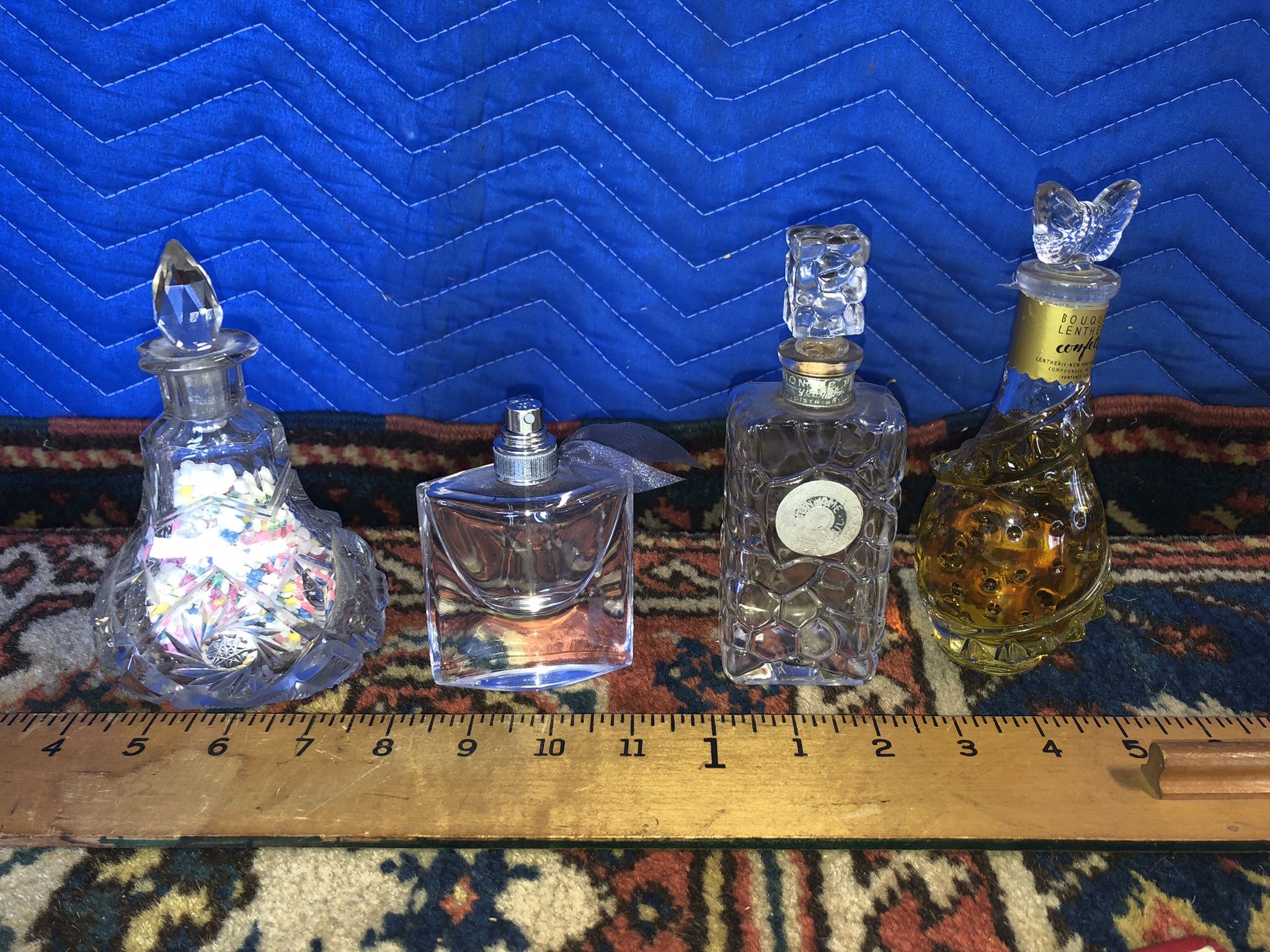 BOUQUET LENTHERIC CONFETTI PERFUME & 3 FRENCH VINTGE BOTTLES
