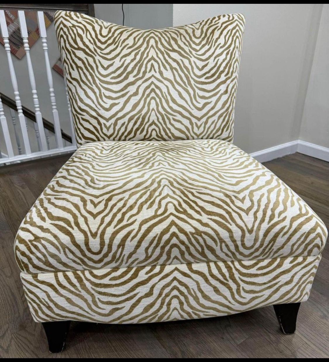 Great condition 2 armless chairs Armless chairs 30” Width 34” Depth 34” Height Material: Fabric Color: : Carmel/Cagnac/Ivory Store bought: Raymour & Flanigan