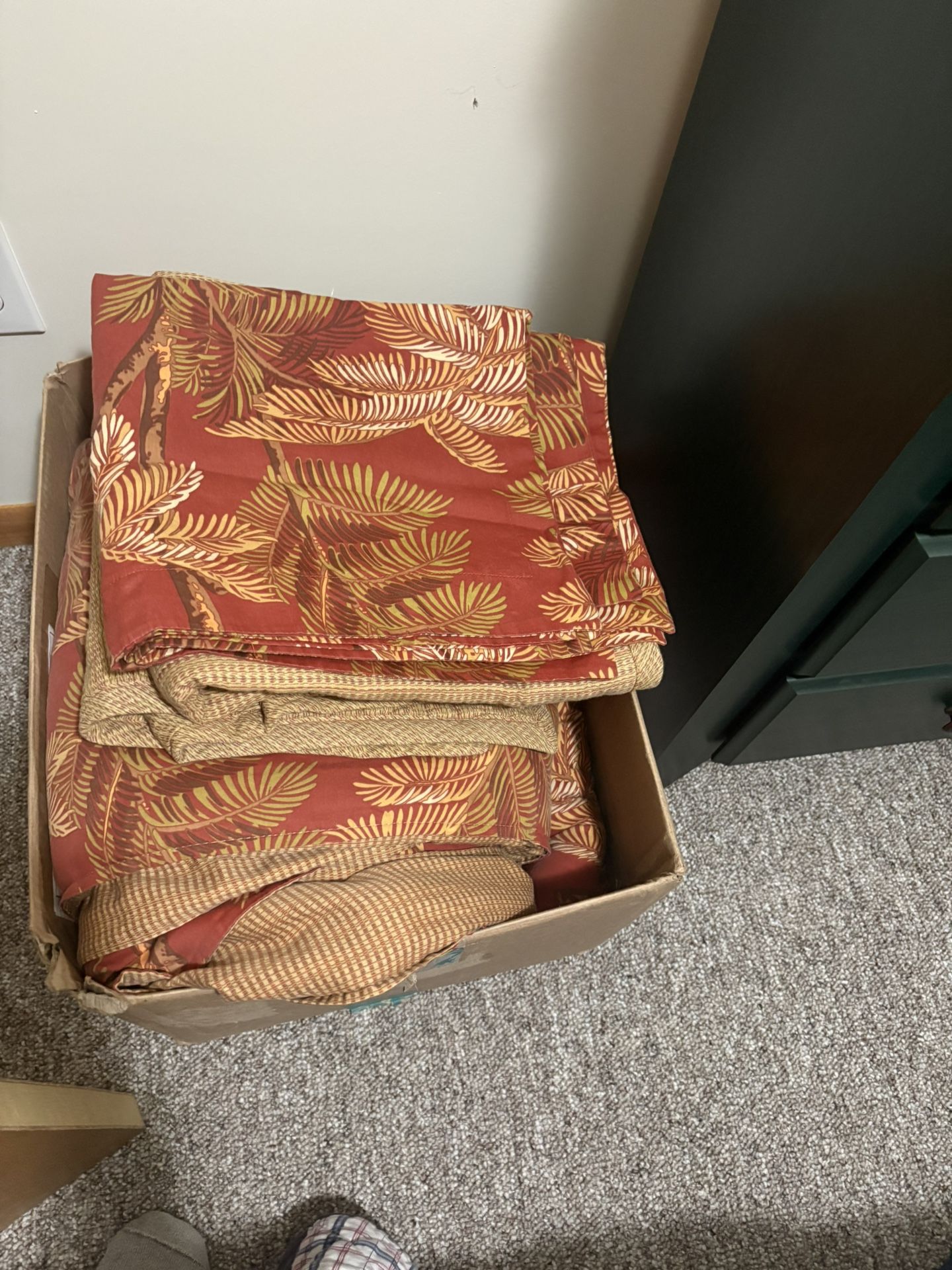 Tommy Bahama queen, comforter set, set includes reversible queen, comforter, very warm, and plush, two standard shams, two euro shams queen bed skirt, excellent condition great quality, smoke, free, pet free, clean home changing decor. $110 obo