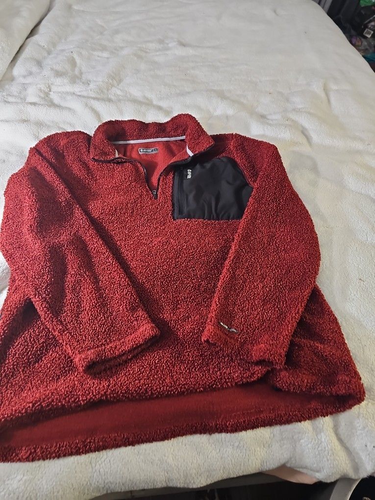 Burgundy Terry Cloth Sweater With Zippered Neck Size Large