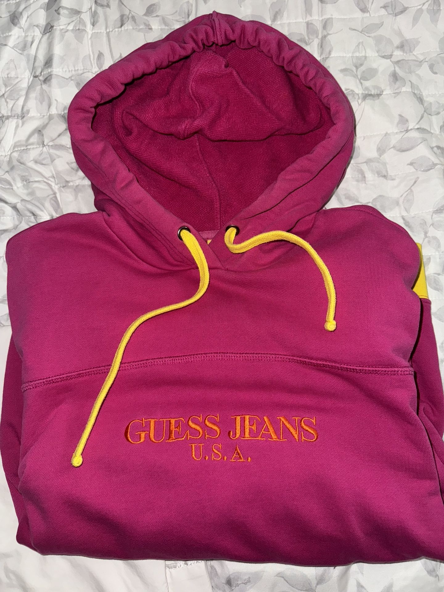 Sean Wotherspoon X Guess Farmers Market Pink and Yellow Oversized Hoodie X-Small
