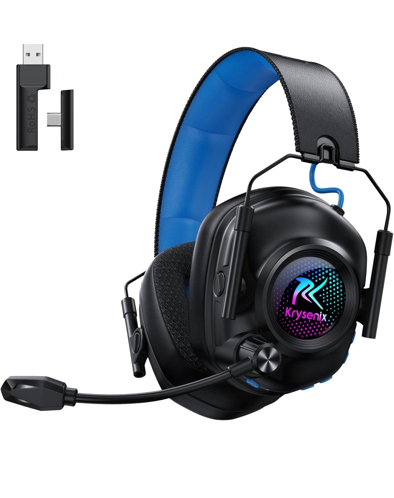 Wireless Gaming Headset with Noise Canceling Microphone for PC, PS5, PS4, Switch, Mac, 2.4 GHz Wireless & Bluetooth 5.4 Gaming Headphones, Cool RGB Lighting, 50Hr Battery, 50mm Drivers(Blue)