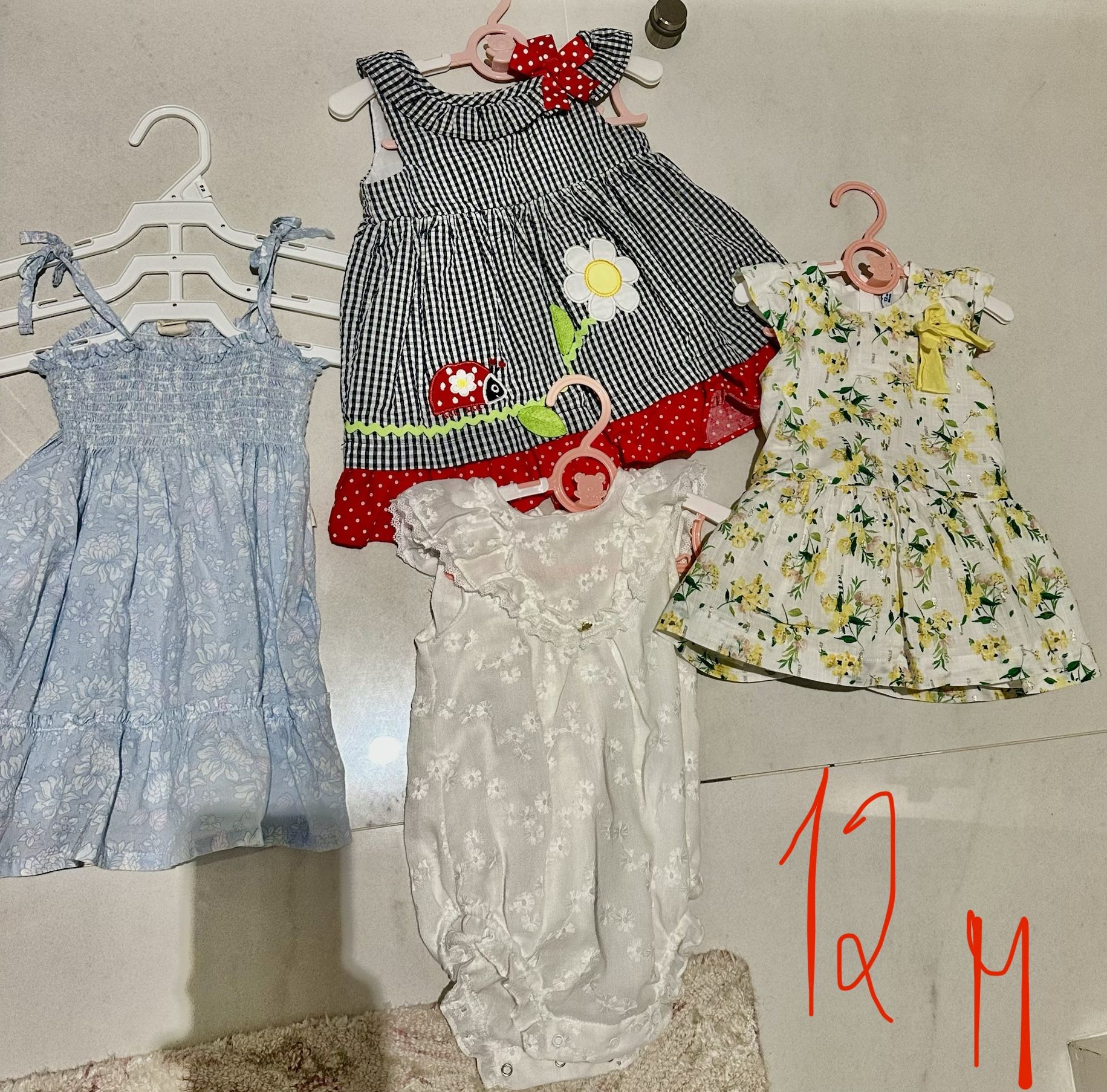 New dresses for 12 months baby girl. All 100% cotton. Includes brands from Spain (Mayoral, Blancherie)