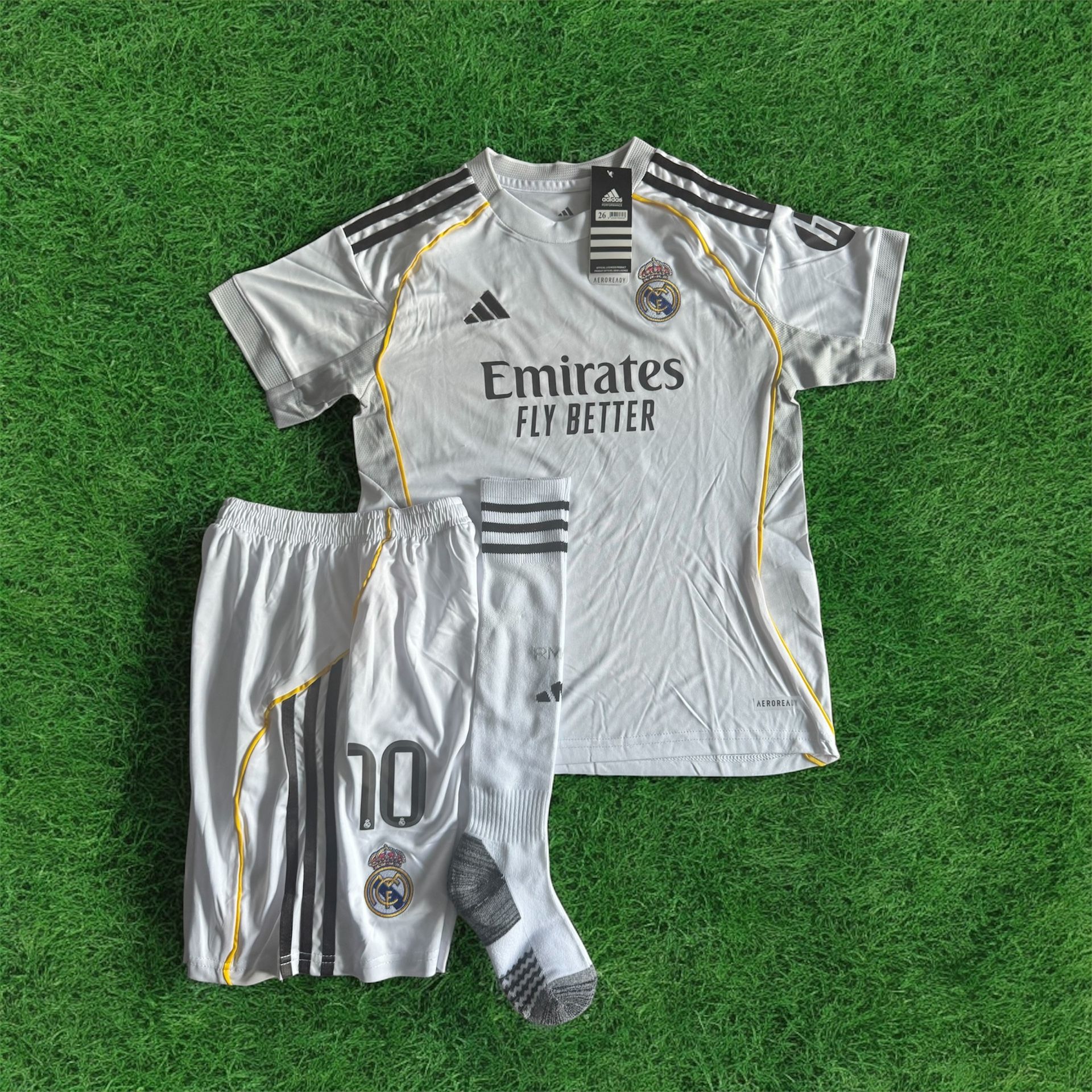 Real Madrid Mbappe #10 Kids Soccer Kit White Sizes Available: 5-6 Years 7-8 Years 8-9 Years 10-11 Years Follow us on instragram: sports12 shop