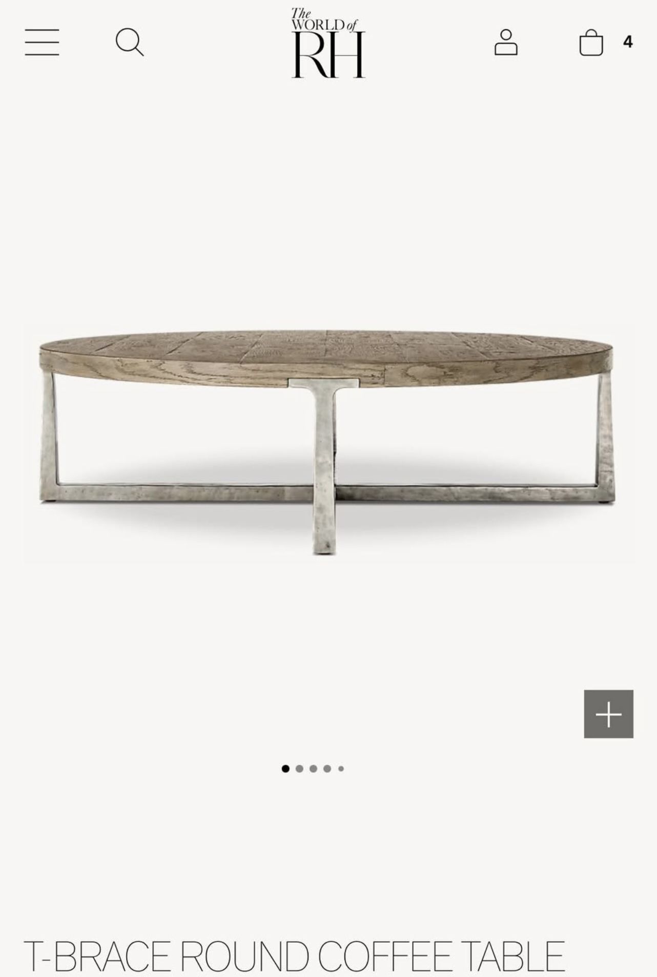 RH RESTORATION HARDWARE T-BRACE ROUND COFFEE TABLE 55' Retail: $8180 MINT