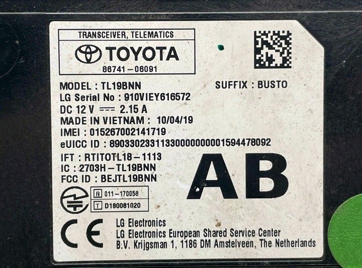 2020 Toyota Camry Le 2.5L Telematic Transceiver Control Module