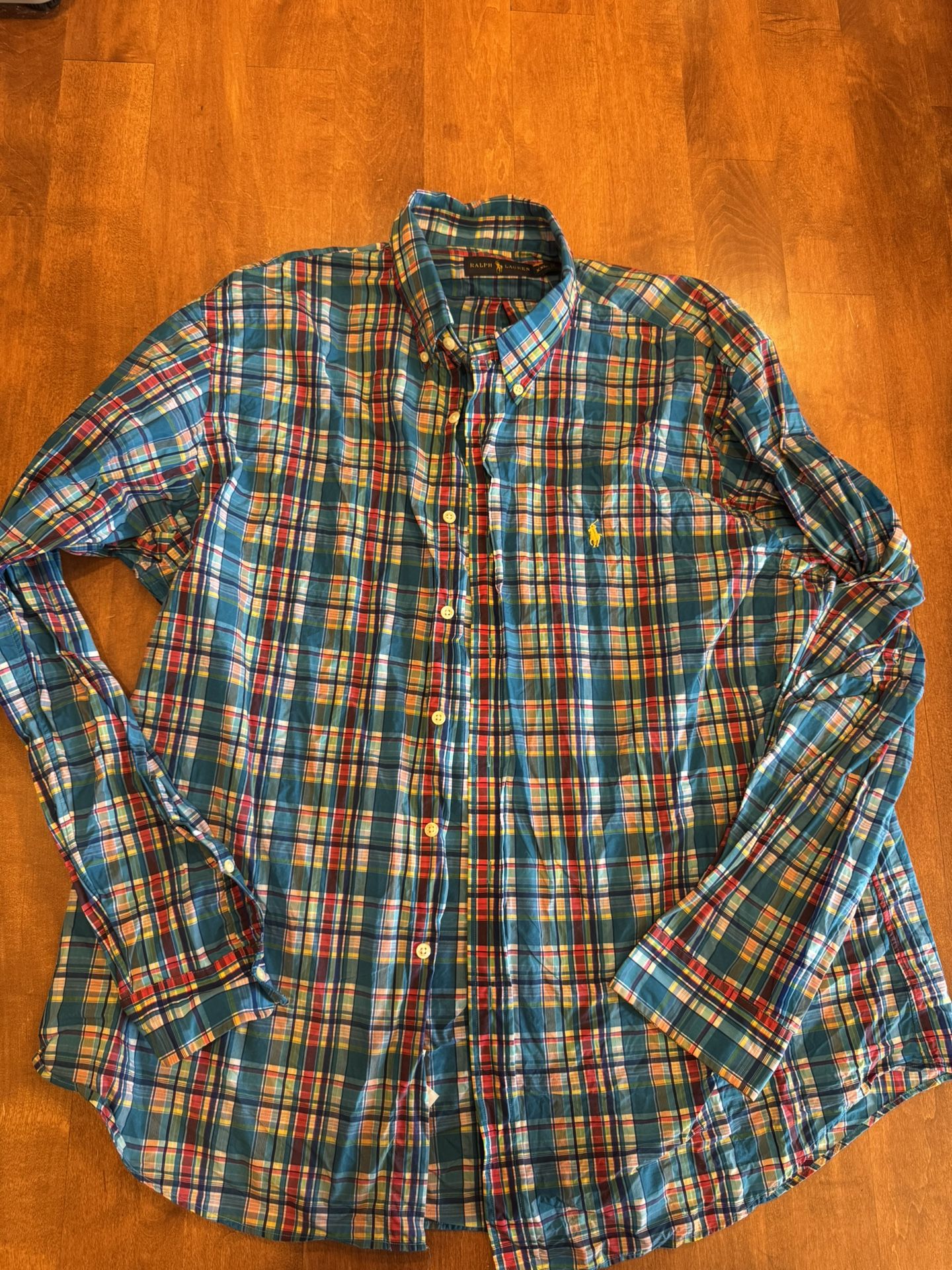Men’s Polo Ralph Lauren button down shirt size XXL. It was only one one time literally like new. Beautiful colors. No holes rips or stains. Smoke free and clean home.