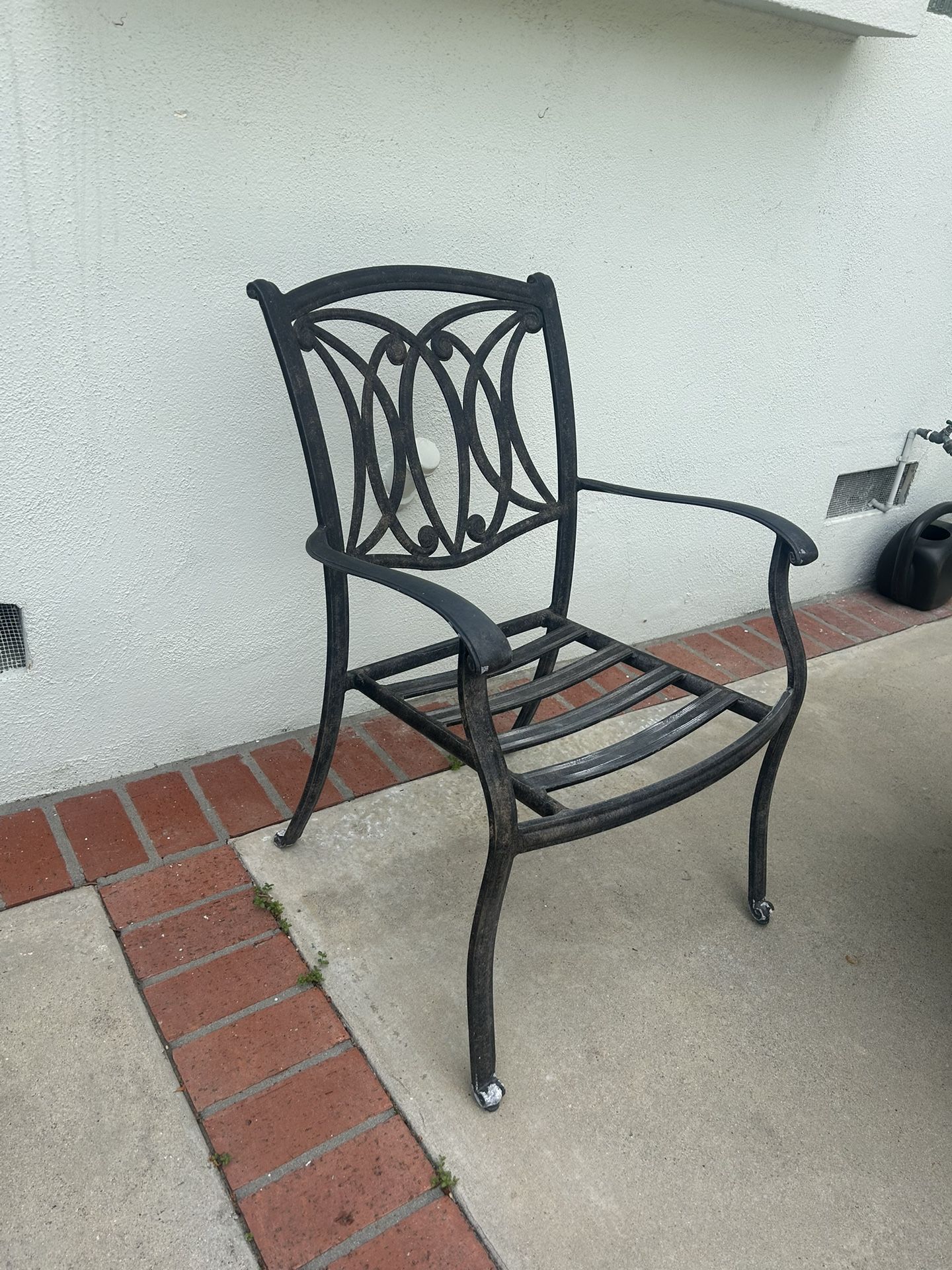 Two metal chairs in great condition. Doesn’t come with cushions.