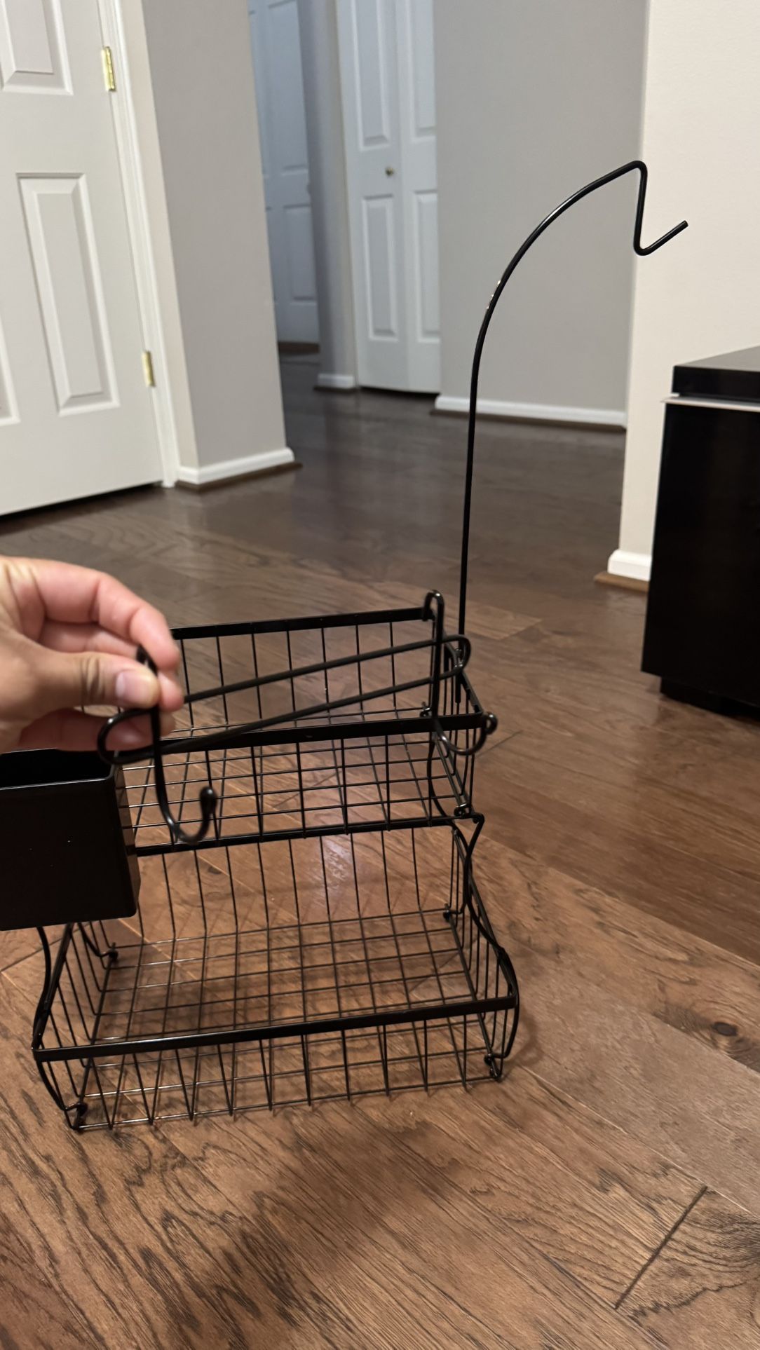 2-Tier Fruit Basket with Banana Hangers, Fruit Bowl for Kitchen Countertop Metal Wire Detachable Vegetable Storage Organizer for Bread Snack Produce, Black