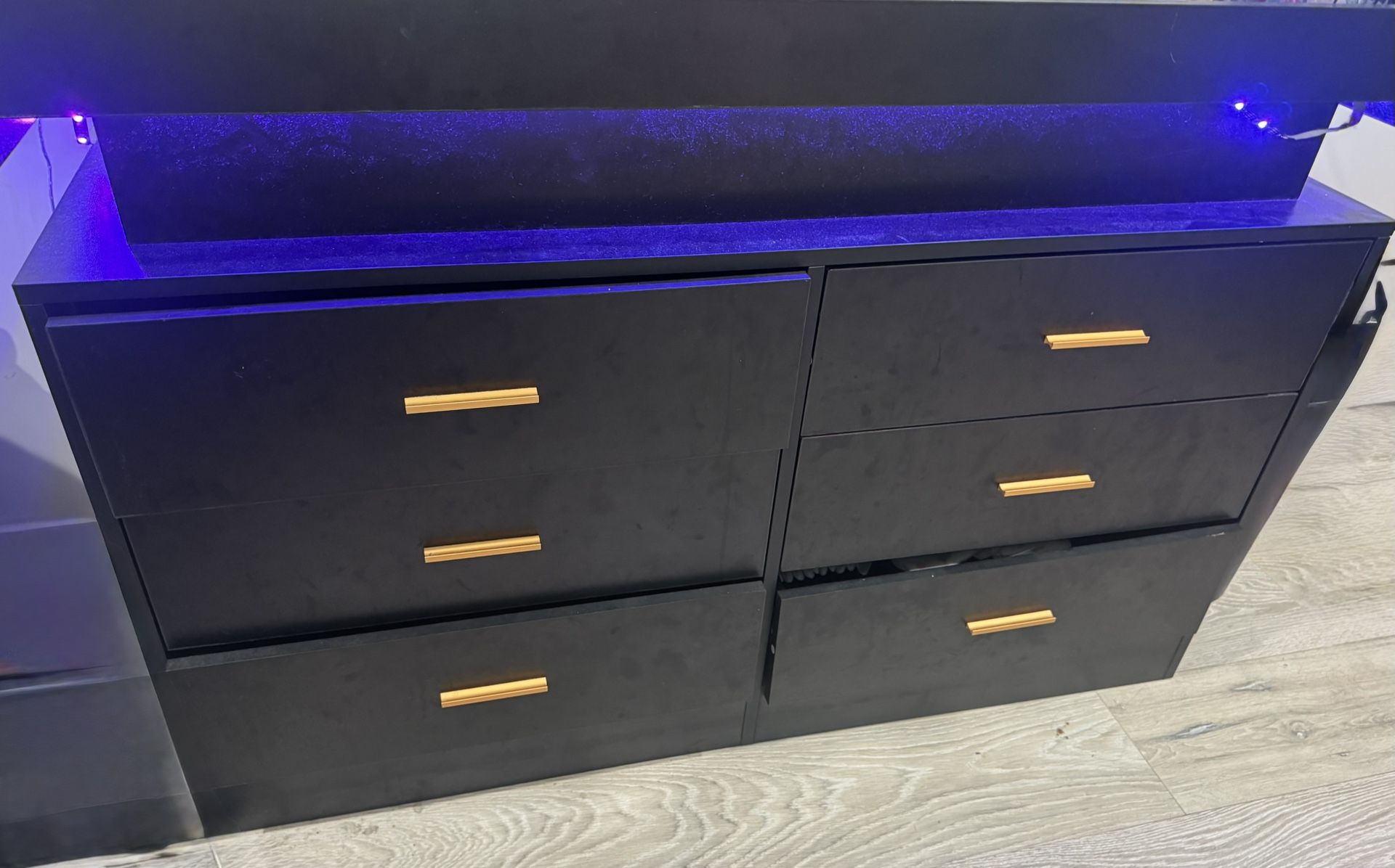 Used, need gone . In good condition has led remote lights . One drawer is loose, easy fix