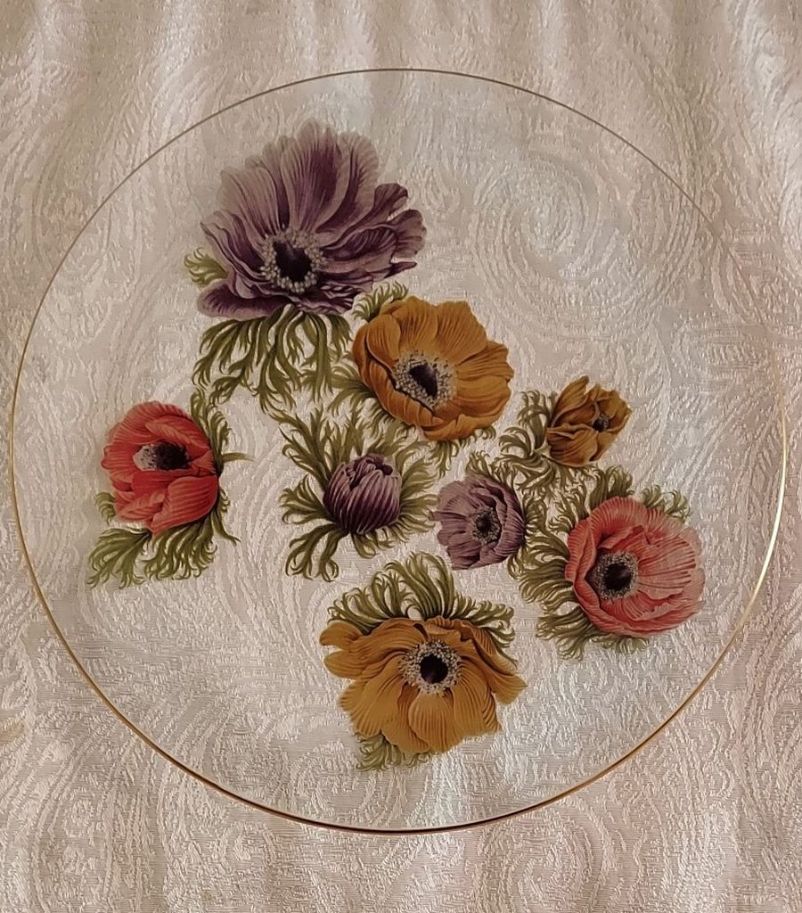 Beautiful Clear Decorative Dish With Poppy Flowers
